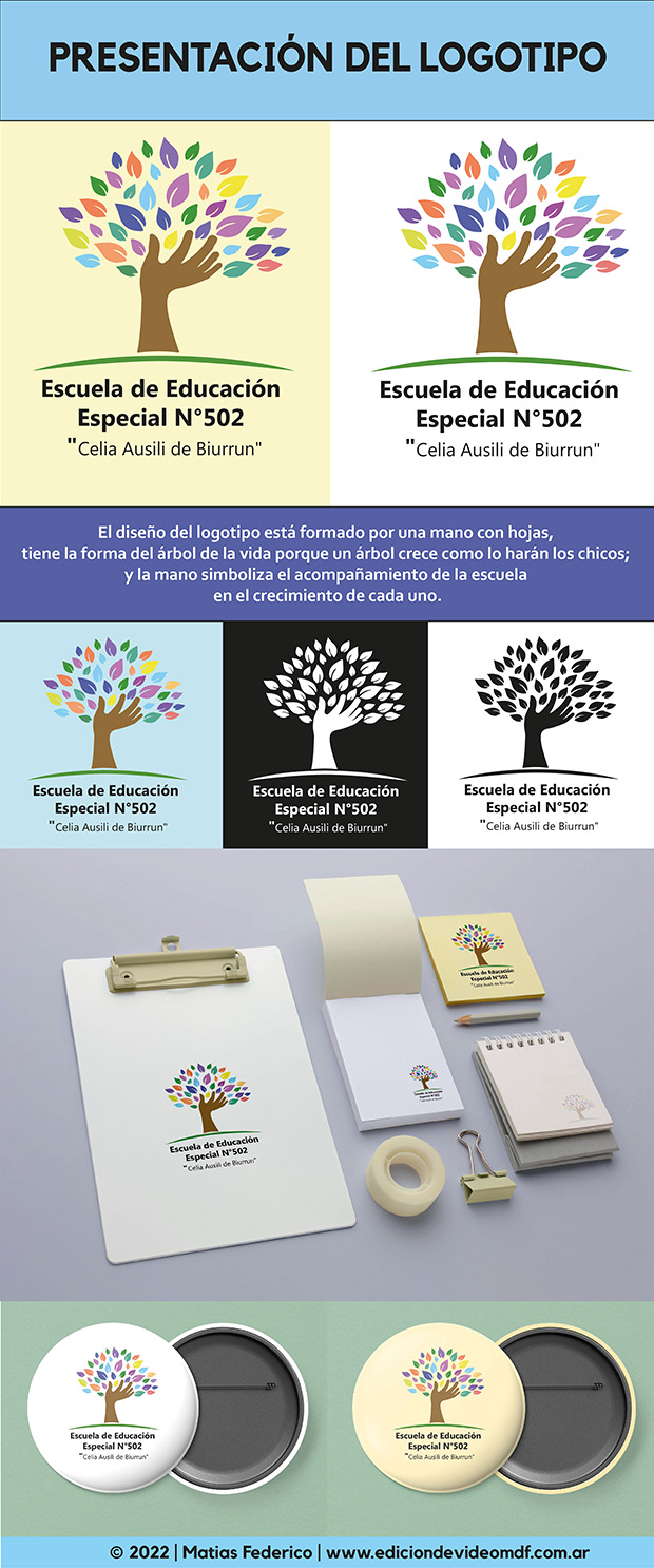 👉Logotipo para la Escuela de Educación Especial N°502 “Celia Ausili de Biurrun” en Norberto de la Riestra😊 👉El diseño del logotipo está formado por una mano con hojas, tiene la forma del árbol de la vida porque un árbol crece como lo harán los chicos; y la mano simboliza el acompañamiento de la escuela en el crecimiento de cada uno.